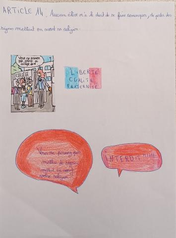 Dans le cadre de leur programme de sixième, les élèves doivent comprendre pourquoi il est important de respecter la charte de la laïcité dans notre école républicaine. La laïcité est inséparable de la devise "liberté, égalité, fraternité".