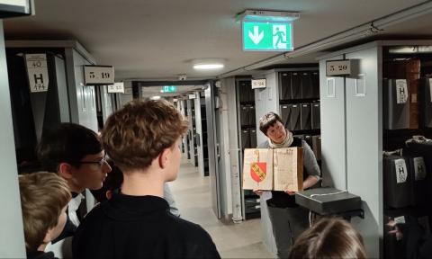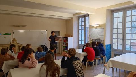 Dans un deuxième atelier, les élèves ont découvert les archives départementales, créées à l'époque de la Révolution. Leur accès est gratuit pour les citoyens qui ont besoin de documents ou de preuves, par exemple pour une étude généalogique. Ils ont compris la règle des "4 C". Il faut d'abord collecter les documents, dans les administrations, les hôpitaux , chez les notaires, des particuliers ... Ensuite classer les documents, avec une cote, pour les retrouver plus facilement. A Valence on conserve plus de 33 km linéaires de documents ! Ensuite conserver : réparer, solidifier, coller, authentifier ... Certains documents très anciens peuvent tomber en lambeaux à cause de l'humidité, des moisissures, du feu... C'est un travail très méticuleux, très long et très coûteux. Enfin communiquer au public : partager, organiser des expositions, numériser pour internet. Il reste cependant des documents classés secrets car relatifs à la vie privée, au secret médical, à la sécurité de l'Etat ... Pour finir la deuxième activité, les élèves ont joué avec une copie d'un jeu de l'oie datant de l'époque révolutionnaire. Le but de ce jeu était de découvrir ce qui a changé pendant ces quelques années : la fin de l'absolutisme royal, la fin des privilèges, la suppression des ordres sociaux, la création d'une France nouvelle.