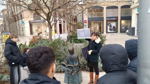 Dans un premier atelier, dans la Maison des Têtes qui a servi de salon philosophique au XVIIIe siècle, les élèves ont à partir d'images revu la composition de la société d'ordres de l'Ancien Régime. Puis, avec une guide, ils ont parcouru les rues de la vieille ville sur les traces de la période de la Révolution et de l'Empire : la statue en bronze du jeune Bonaparte élève officier artilleur dans la ville, la statue du général Championnet sur le Champ de Mars, la place Bonaparte à l'emplacement de l'ancienne maison où a vécu Napoléon, la cathédrale qui a servi de salle de réunion et de temple de la Raison pendant la Révolution, le temple protestant où est conservé le coeur du général Championnet, le mur de la première préfecture de l'Empire ( détruite par un bombardement en 1944 ) . Pour finir cette première activité, il fallait remettre en ordre la chronologie des événements à partir d'images.